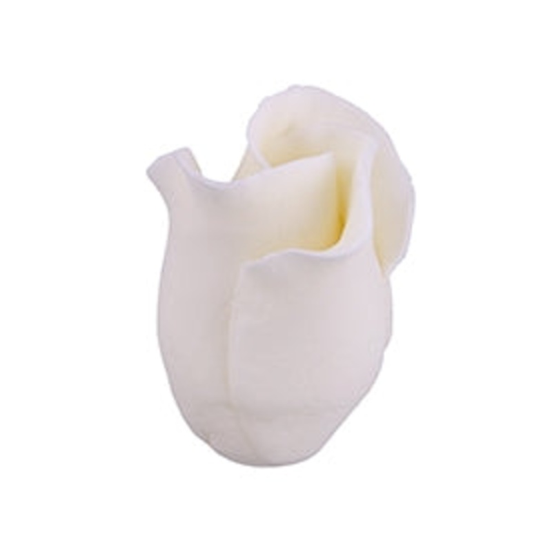 GUM PASTE "FORMAL ROSE" BUD ON A WIRE - WHITE3/4"W X 1"H