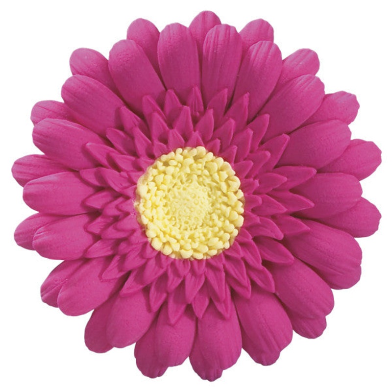 Decorate a fun, cake with these hot pink gerbera daisy decorations. Gum paste is safe for food contact and not intended to be eaten. Contains wires.Dimensions:Hot Pink Gerbera Daisy: 3 x 3 x 0.85 inches