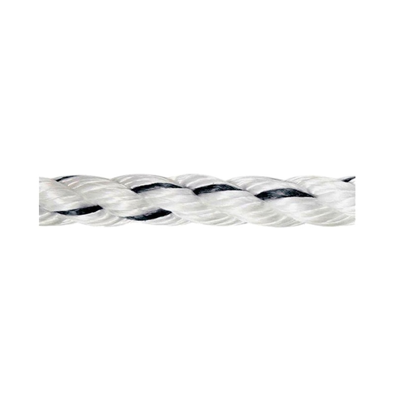 Rig Master 1/2″ diameter Rigging Rope. This three strand composite rope is easy to handle and splice. The polypropylene over polyester construction allows for a comfortable grip, is abrasion resistant, energy absorbent and absorbs very little water. Strength is 5,800 pounds.