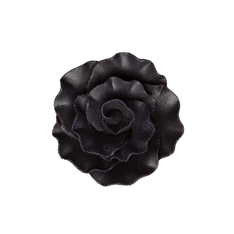 Item: Formal RoseSize: 2"Color: BlackThere is a hole in the base at the center - so you can turn over the rose and add a wire or a pick if you like - to accommodate your design (comes without wire).
