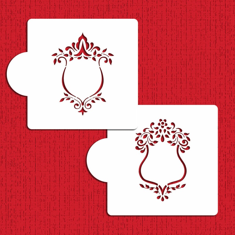 Designer Stencilsregal Monogram Shields look elegant for either a man or woman. Sized to approx. 2.6"W x 3.75"H they fit cake sides, tops and larger cookies. Monogram open space is 1.2" x 1.2"Laser cut from durable, 10 mil food grade plastic for repeated u