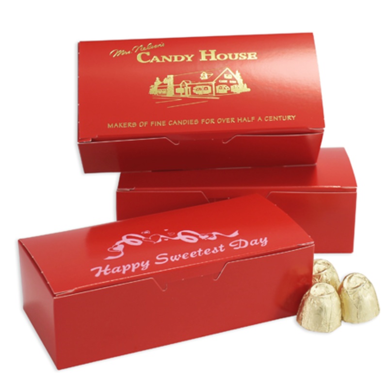 28R – 7 x 3 3/8 x 2 Red Candy & Fudge Boxes- 1 lb.