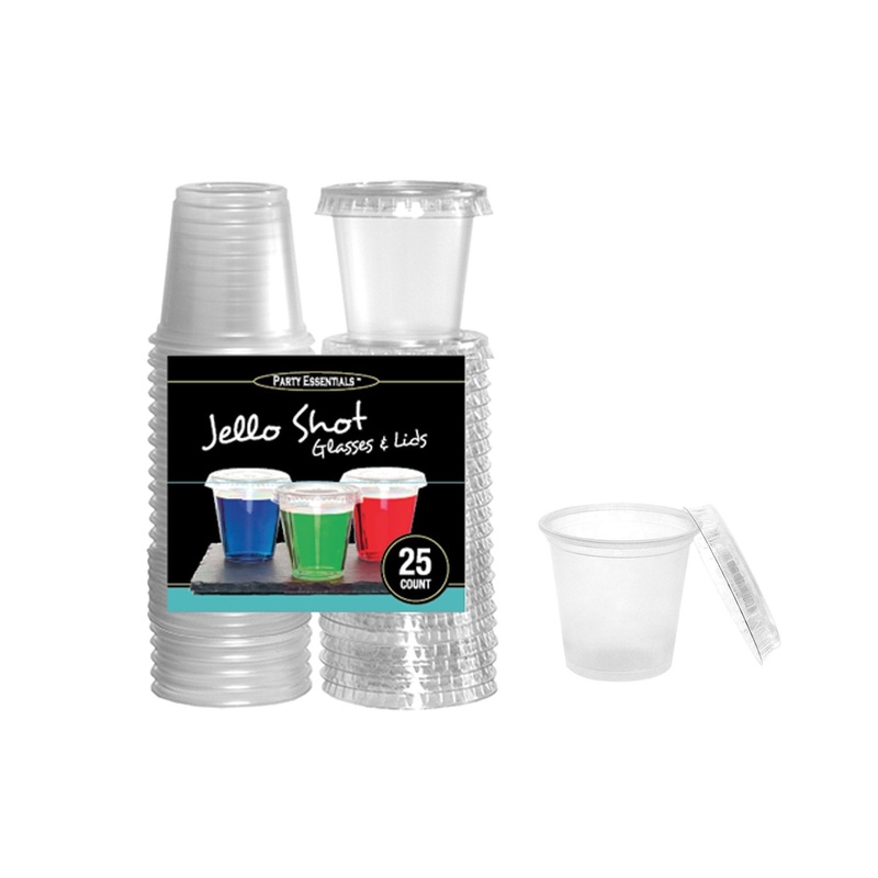 Single Pack of 25or Case of18 Packs: 450ctComes with 18 packages of 25 jello shots and lidsOne of a kind Shot glass like shape and designHand washable, reusable or disposable for quick after Party clean-upIdeal for picnics, parties, reunions and everyday u