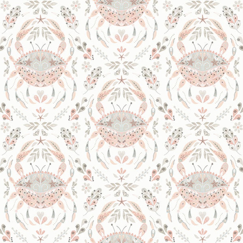 Floral designs and sea creatures combine beautifully in this fanciful damask pattern. Its whimsical yet coastal style is perfect for emphasizing its unique charm. Annapolis is a prepasted, non woven blend wallpaper.