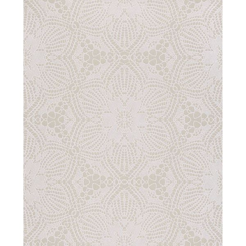 This large scale medallion wallpaper is the perfect neutral bohemian print. The shimmering champagne color and matte lace print create a beautiful design.