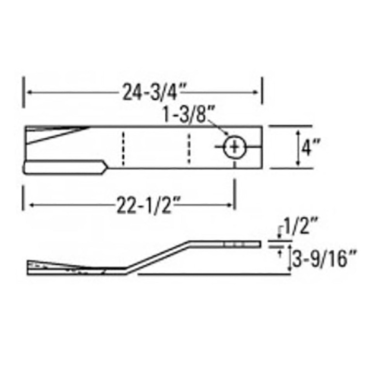 One New Aftermarket Replacement Servis Blade Fits Rhino Rotary Cutter Models: 1008 FLEX 15, CYCLONE 60, FLEX 15 EFFECTIVE LENGTH: 22-1/2" OVERALL LENGTH: 24-3/4" HOLE DIAMETER: 1-3/8" BLADE WIDTH: 4" THICKNESS: 1/2" ROTATION: CCW, lift Fits CAT: LH blade f