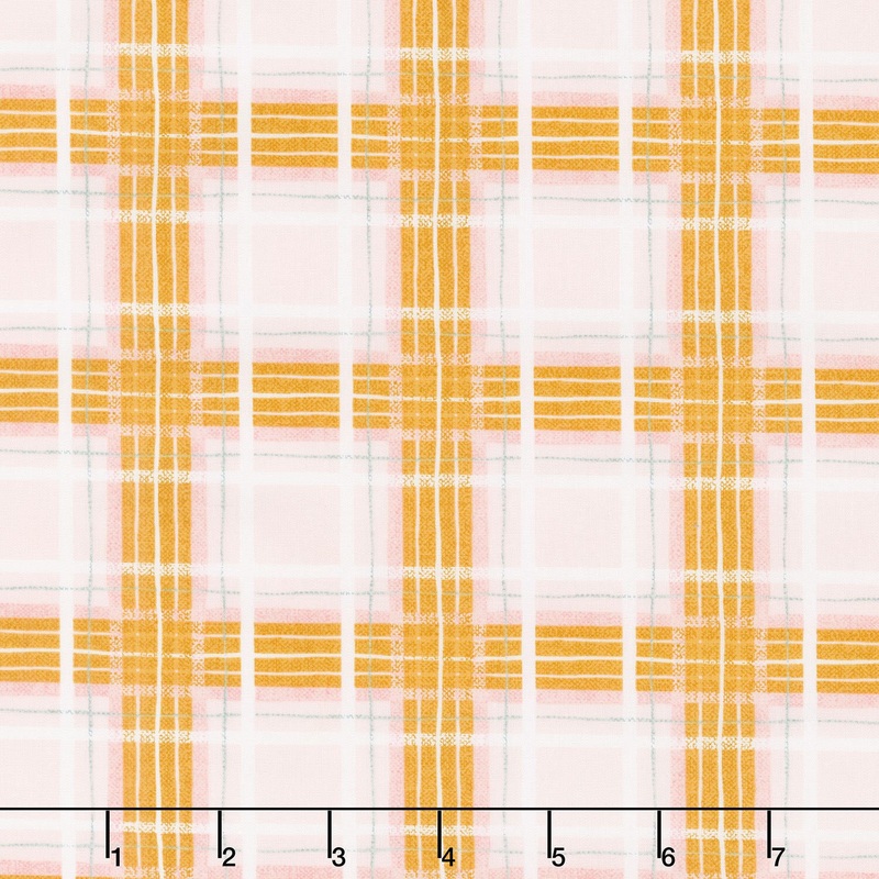 White, gold, and light pink plaid pattern. Perfect for adding a little extra holiday spirit to your projects!Adventale by Katarina Roccella for Art Gallery Fabrics is all about the cozy, joyful vibes of the holiday season. Inspired by love, faith, and fami