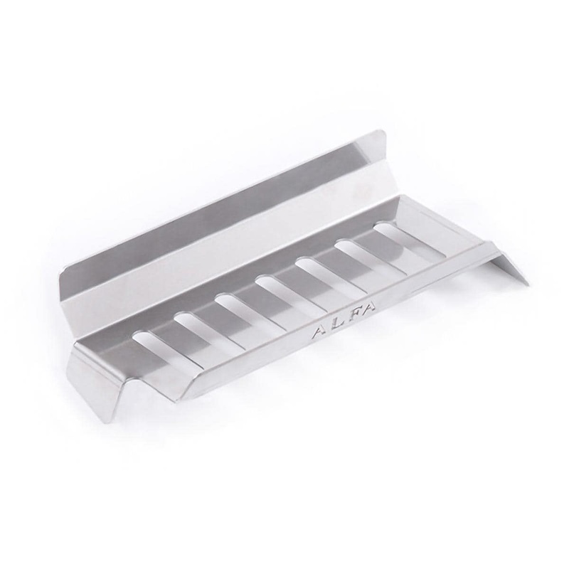 The stainless steel wood holder is an essential accessory designed for use with Alfa Ciao and 5 Minuti pizza ovens. It helps maximize cooking space by keeping wood and embers away from the cooking area, ensuring optimal combustion and airflow for efficient cooking.