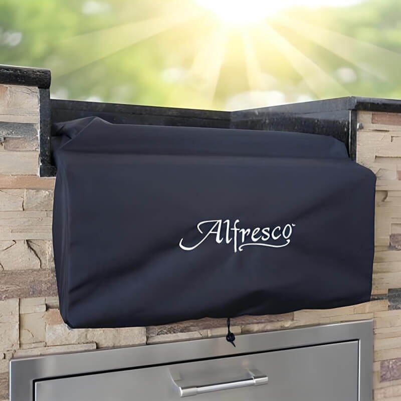 This premium grill cover is specifically designed for the Alfresco Versa Power Burner Cover, offering an ideal fit to safeguard your outdoor cooking equipment. Made from water-resistant vinyl, it ensures your grill stays protected from rain, pollen, and other outdoor elements. The cover’s high-density canvas fabric is not only durable but also contributes to the longevity of your grill by shielding it from various weather conditions. Additionally, the elegant embroidered logo on the cover adds a refined aesthetic, blending functionality with style. Protect your investment with this tailored, resilient cover, ensuring your grill remains in pristine condition for your next outdoor culinary adventure.