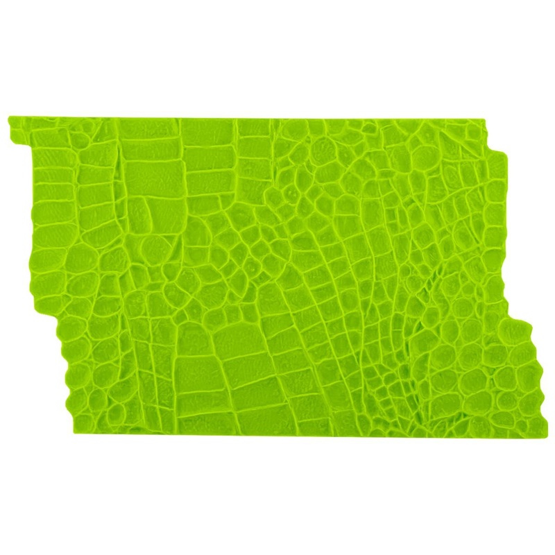 This new mold has produced a flexible alligator impression mat that is extremely versatile when compared to rigid plastic mats yet imparts the most amazing details onto fondant, gumpaste and any clay-like medium. Perfect for creating fashinable shoe, purse, and monster cakes!