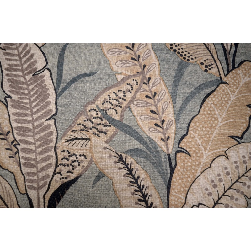 Amelia Mineral is a pretty taupe and blue tropical leaf printed fabric from Regal that is in stock and available at The Fabric Co. Amelia Mineral could add a fun pop of color to your next decorating project!