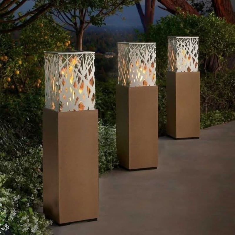 The products in the Nest collection feature brushed stainless steel nest pattern in the design. Several of these can be displayed down a path or placed near a fireplace or other outdoor feature to add sophisticated elegance to your outdoor area.