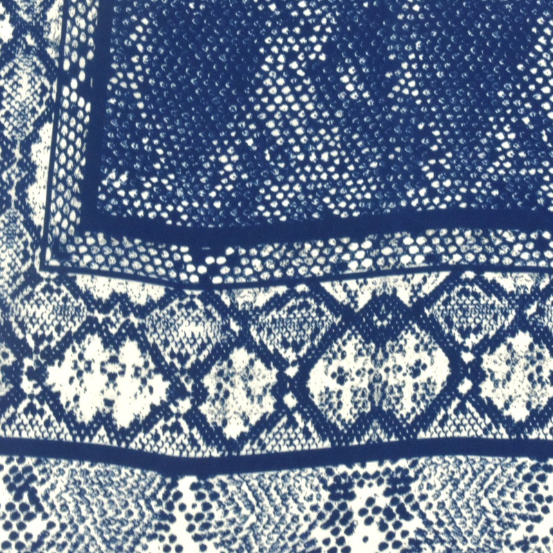 -Snake skin border frame-like design panel printed on a 100% silk crepe de chine fabric. Ideal for scarves, Bandana, or Shawl. Note that each piece is sold by one panel. One fabric cut is approx. 48"x55". The square pattern print is approx. 27" x 29". The
