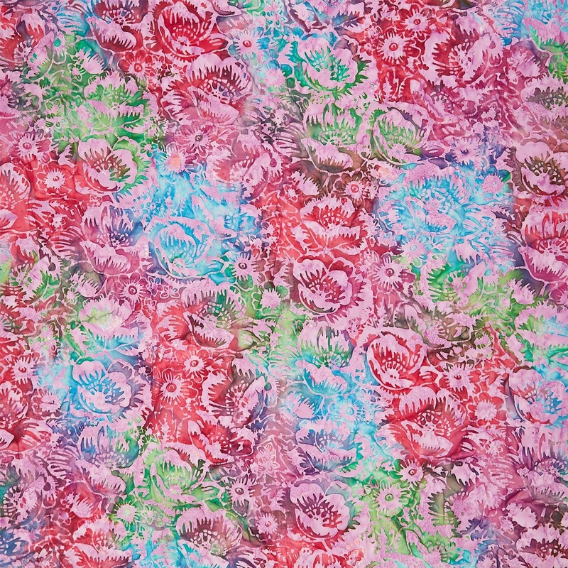 Pink and other color wild poppies, packed and overlapping. Go wild with these poppies! Artisan Batiks - Wild Poppies is a splashy collection of floral prints! Designed by Lunn Studios for Robert Kaufman Fabrics, these bright poppies would be fantastic in a