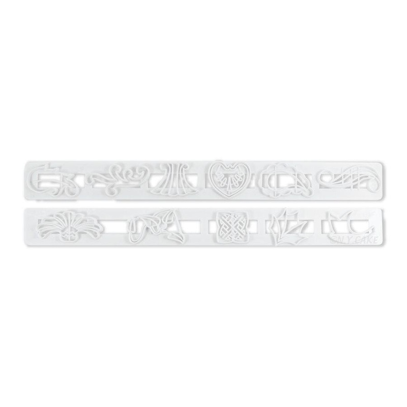These plastic border molds are perfect for making beautiful borders on your cakes and pastries. Simply cut out and attach to your cakes in minutes!Cavity Size from 1 Inch to 1 3/4 InchSet of 2