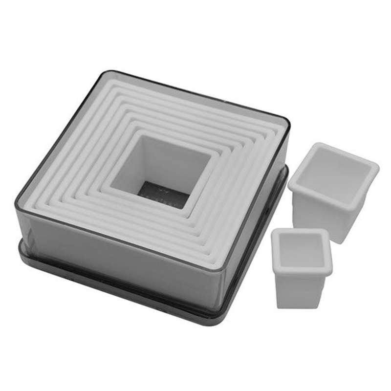 Strong, sturdy, and sharp enough to cut dough and sugar paste. Plastic material does not stick to dough like metal cutters.Cutters range from .75 to 3.9Made of Polypropylene.Made in China.
