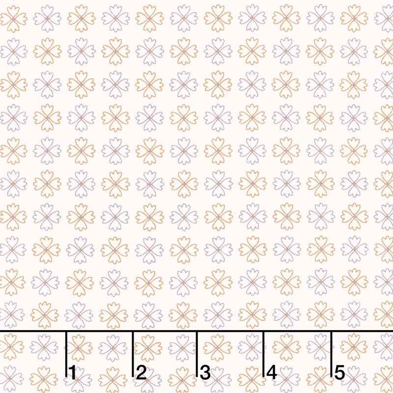 Taupe and lavender blossoms on an off-white background. When the cool temps of fall are in the air, bring the warm colors of Autumn into your sewing room! The Autumn collection by Lori Holt for Riley Blake Designs is filled with cozy colors such as brown sugar, pumpkin, and marigold. Some blues, greens, and shades of cream provide just the right balance. Youll fall head over heels for these checks, stripes, dots, flowers, and more!