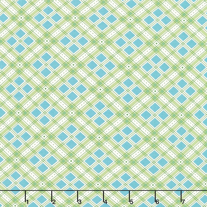 Blue and light green plaid. When the cool temps of fall are in the air, bring the warm colors of Autumn into your sewing room! The Autumn collection by Lori Holt for Riley Blake Designs is filled with cozy colors such as brown sugar, pumpkin, and marigold. Some blues, greens, and shades of cream provide just the right balance. Youll fall head over heels for these checks, stripes, dots, flowers, and more!