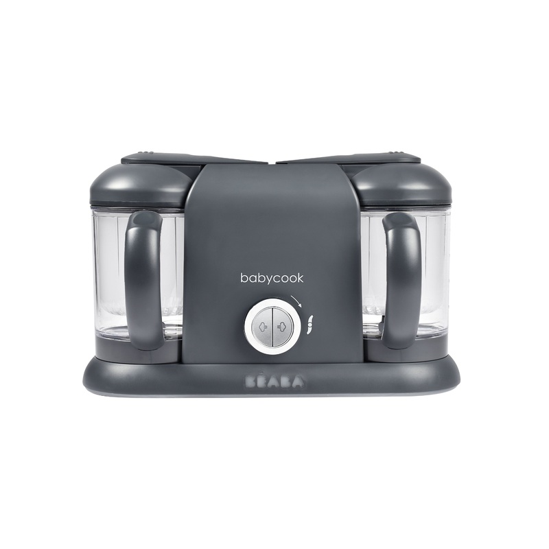BEABA Babycook Duo Baby Food Maker is a homemade baby food machine that helps parents make fresh, nutritious purees for baby with natural ingredients they can pick and control. With easy one-handed operation andtwo large capacity cooking bowls, the BEABA Babycook Duo functions exactly like theBabycook Solo, just withdouble the cooking capacity.Make two types of homemade baby food at once in this innovative four-in-one appliance that steams, blends, defrosts and reheats. Preparing up to nine cups of food at once, the Babycook Duo steams raw chicken, fish, veggies and fruits in less than 20 minutes, then purees them to your desired consistency using the nutrient-packed steaming liquid. The charcoal grey baby food maker offers one-handed operation, auto shut-off for worry-free cooking and dishwasher-safe cleanup.