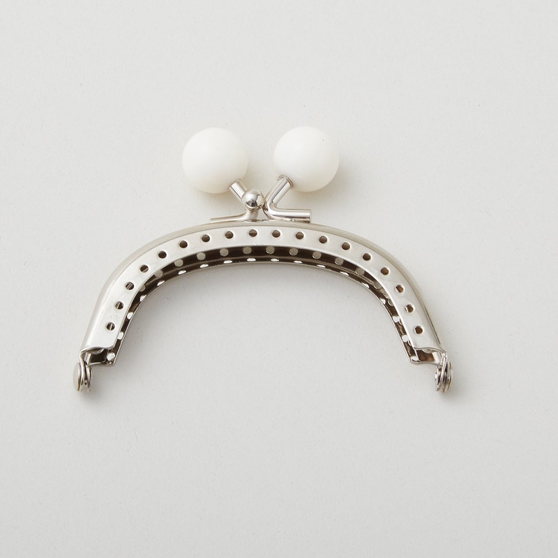 Use this refill Bauble Sew-In Clasp when you make extras of the Zakka Workshop Sew-In Bauble Purse. The silver clasp features white baubles and could also be used in a coin purse that you design.