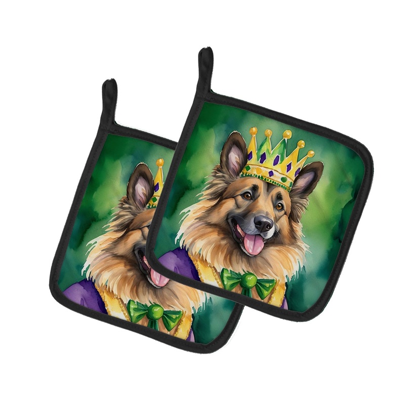 Belgian Tervuren King of Mardi Gras Pot Holders – Set of 2 Decorative Kitchen Helpers | Made in the USA