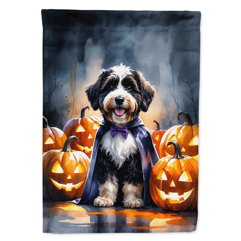 Garden Flag featuring breed specific Bernedoodle artwork. Celebrate Halloween with this Halloween Garden Flag. Enhance the beauty of your garden, patio, or yard with Caroline's Treasures Decorative Garden Flag, proudly made in the USA. Crafted from two pie