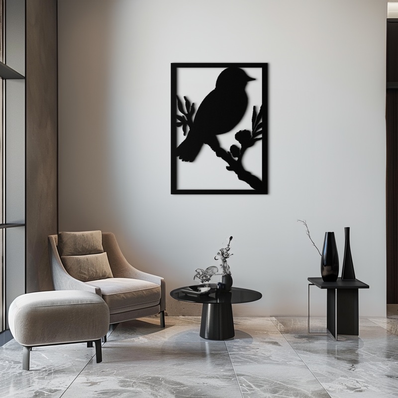 Bring nature's serenity into your space with this Bird on Branch Metal Wall Art, crafted from 1.5 mm premium steel and coated with electrostatic paint for long-lasting durability and a rust-resistant finish. The minimalist silhouette of a perched bird make