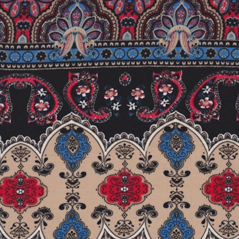 Printed polyester crepe de chine-Weight: Light-100% Polyester-Width: 59"-Transparency: Non-sheer-Hand: Soft, Delicately textured-Stretch: None-Drape: Full bodied drape-Luster: Matte-End Uses: blouses, dresses, skirts and more Compare to $12.00/yd