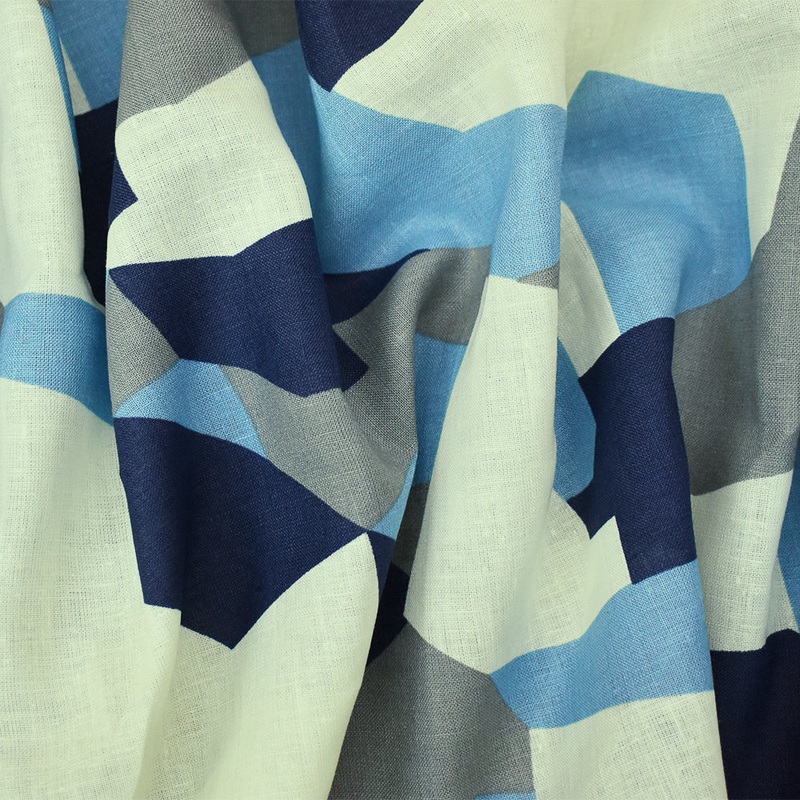 -100% linen plain woven fabric printed with a geometric abstract pattern. Line if needed.