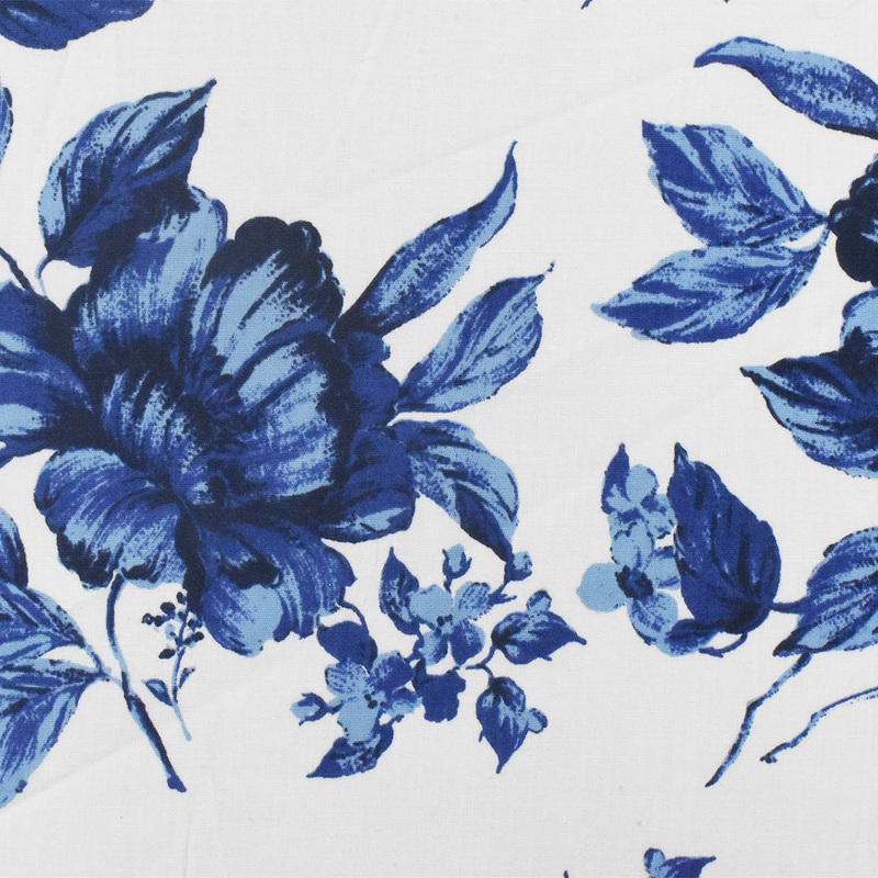 -Floral border printed stretch cotton poplin woven fabric-98% Cotton 2% Spandex-Width: 50"-Weight: Light-Transparency: Opaque-Hand: Soft-Stretch: Slight Horizontal Stretch-Drape: Good Drape-Luster: Matte-End Uses: Apparel,Blouses,Dresses,Shirts-Compare to
