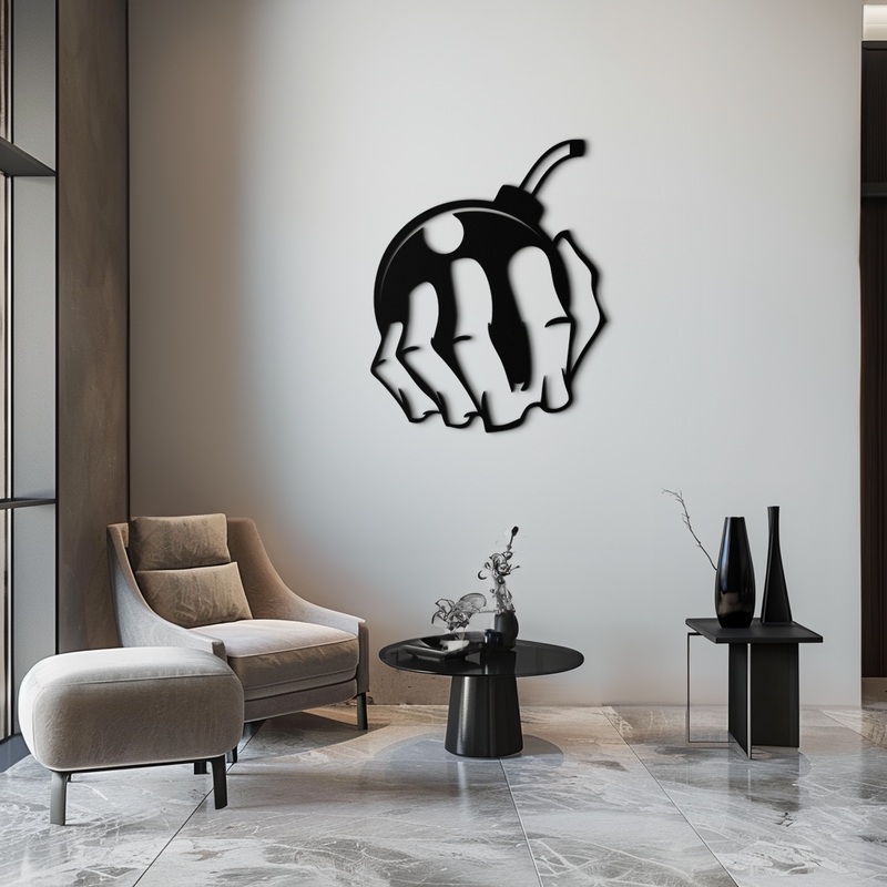 Add a bold and rebellious touch to your space with this Bomb Hand Metal Wall Art. Designed for those who appreciate edgy, street-style aesthetics, this metal artwork features a detailed skeletal hand gripping a bomb fuse, symbolizing power and intensity. Crafted from 1.5mm premium steel and finished with a durable electrostatic coating, this piece resists rust and fading, making it perfect for indoor and outdoor use.