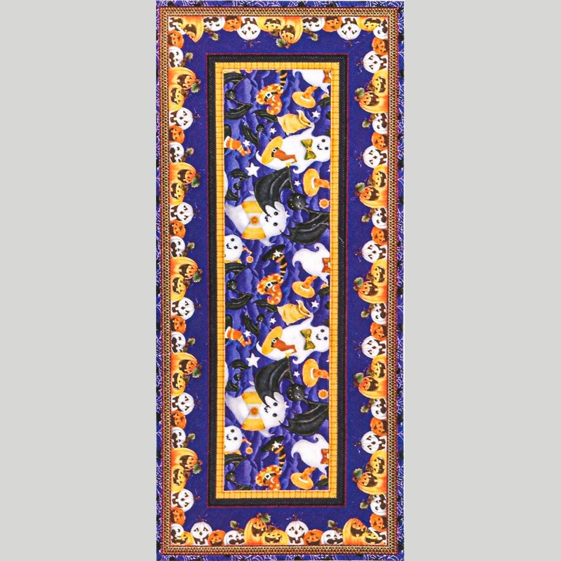 Make a specter-acular table runner for Halloween with glow-in-the-dark fabrics! Kit includes pattern, designed by Karen Bialik, and fabrics for the top and binding from the Boo Whoo! Collection by Gail Green for Henry Glass Fabrics. Youll need 1/2 yard of