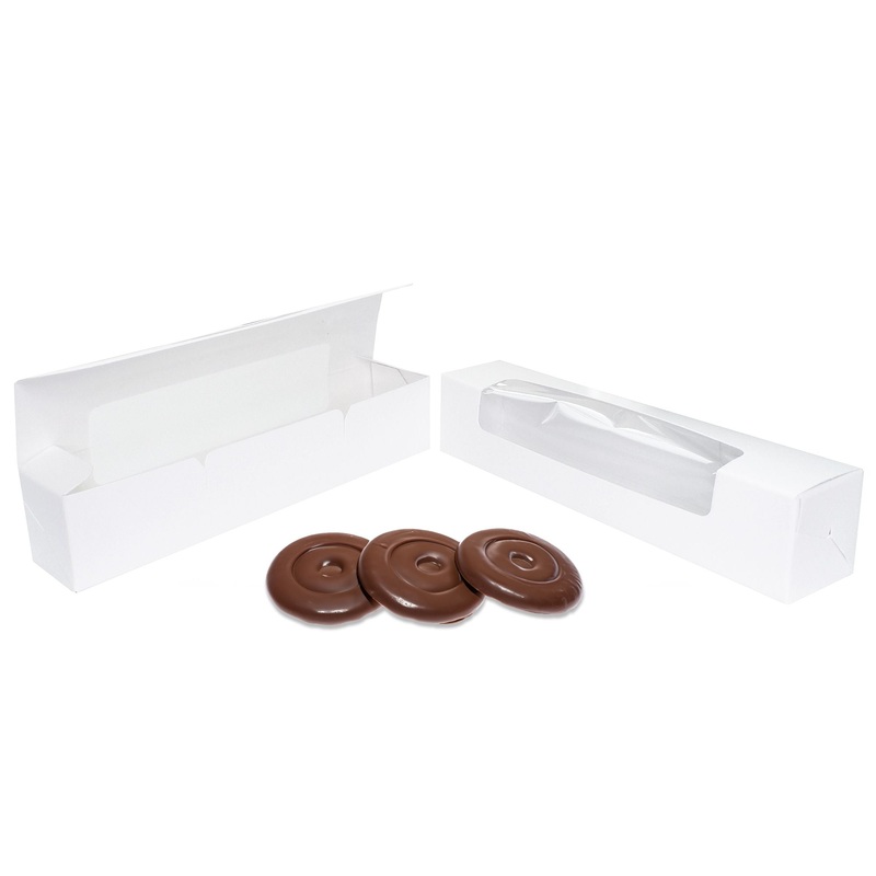 *Please note these boxes do not have any designs or writing.Macaron Cookie Boxes - 1 piece Die Cut, MediumCase: 250Details:These Die Cut Blank Favor Boxes feature a Window and are perfect for packaging Mints, Cut Fudge, Chocolate Golf Balls, Meltaways and