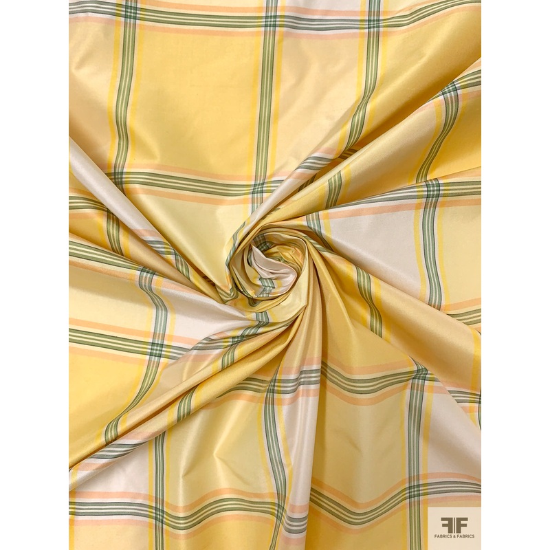Box Plaid Yarn-Dyed Silk Taffeta – Soft Yellow / Green / Salmon Fabric by the Yard