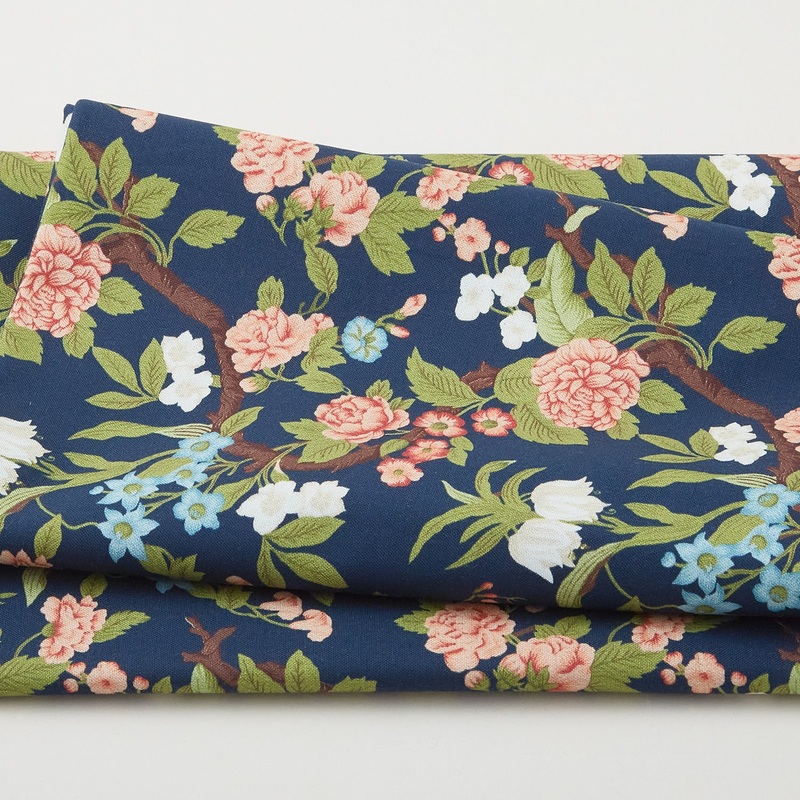 A 2 yard cut of pink, white, and blue flowers on a navy background. Sew many blooms! Canterbury Favorites by Blank Quilting is a charming fabric collection full of florals. This collection features flowers, dots, paisley, and more. Stop and sew the roses w