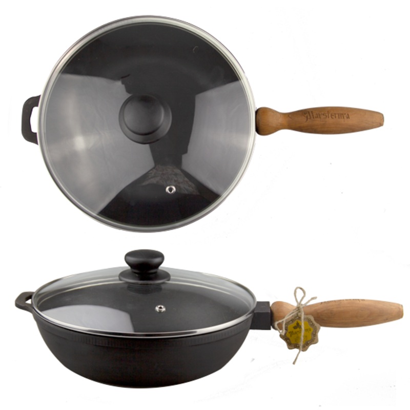 Be the first to review “Cast iron skillet with wooden handle and glass lid 24cm”