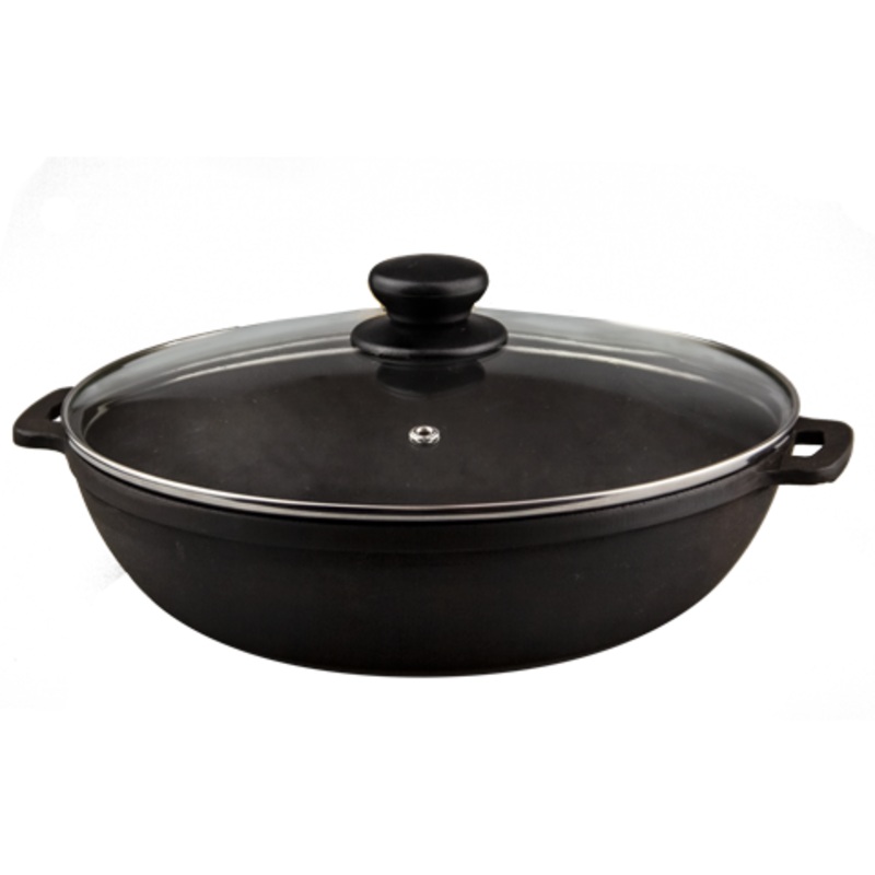 Cast iron wok with glass lid 26cm