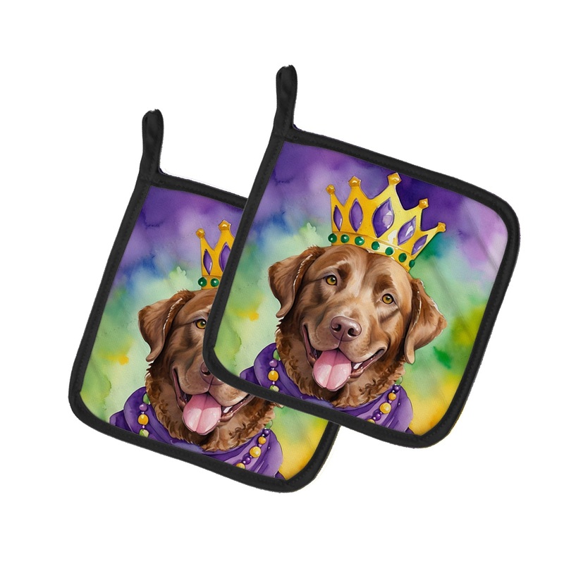 Pair of Pot Holders featuring breed specific Chesapeake Bay Retriever artwork. Celebrate Mardi Gras with this Mardi Gras Pair of Pot Holders. A Pair of Pot Holders to match your kitchen decor. Made in the USA these are thick and functional. Full color artw