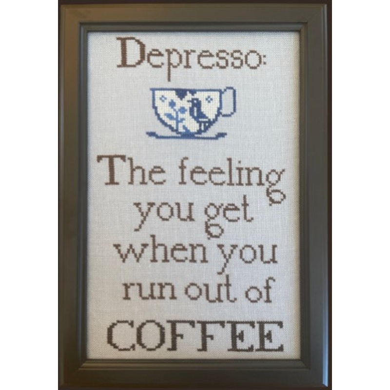 Stitch count is 75 x 96.Model was stitched on 28 count Mystic Grey linen from Zwiegart and stitched with threads from DMC.