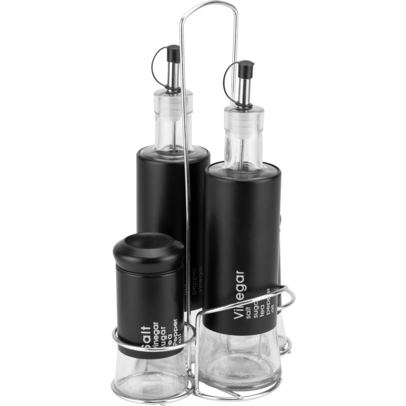 2x bottle oil/vinegar 320ml each2x shaker salt/pepper 150ml each1x stand