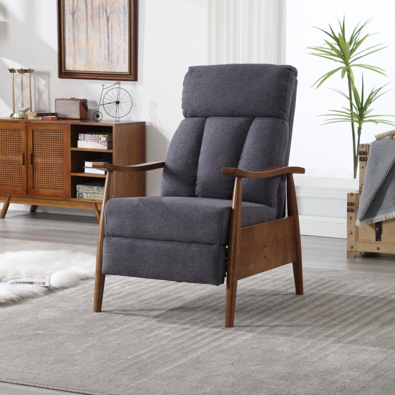 Chair designThe Accent chair is designed to lean back with your arms on the armrest to support your legs stably and can be lowered when not in use. You can enjoy a relaxing time in this single chair, which is a great addition to your evening reading, games and movies.The design of the cushionClassic mid-century modern chair with armrests, extra couch and plush foam padding for more comfort; Solid wood frame and wooden legs increase stability and durability.Adjustable Recliner ChairOur recliner chair can be adjusted on your own . Sitting upright, reclined with feet up, Lie down for a nap, our Recliner chairs fit your different need perfectly.This chair features a dual-function foot extension and a reclining back that will be a great helper for you to unwind and de-stress.Comfortable & SturdyThe fabric recliner chair is made by high-quality comfortable fabric with arm(comfortable skin-friendly), high-density filling sponge (high resilience and high permeability), solid hardwood frame totally keep your safety with the added stability and durability.Recliner with foot restThis recliner chair upgraded with footrest.Just enjoy your reading, music, napping time and fully relax your body and mood with this comfortable massage recliner.And this single sofa not only use in home but also in business place, theater. The weight capacity is 250lbs.Weights & Dimensions