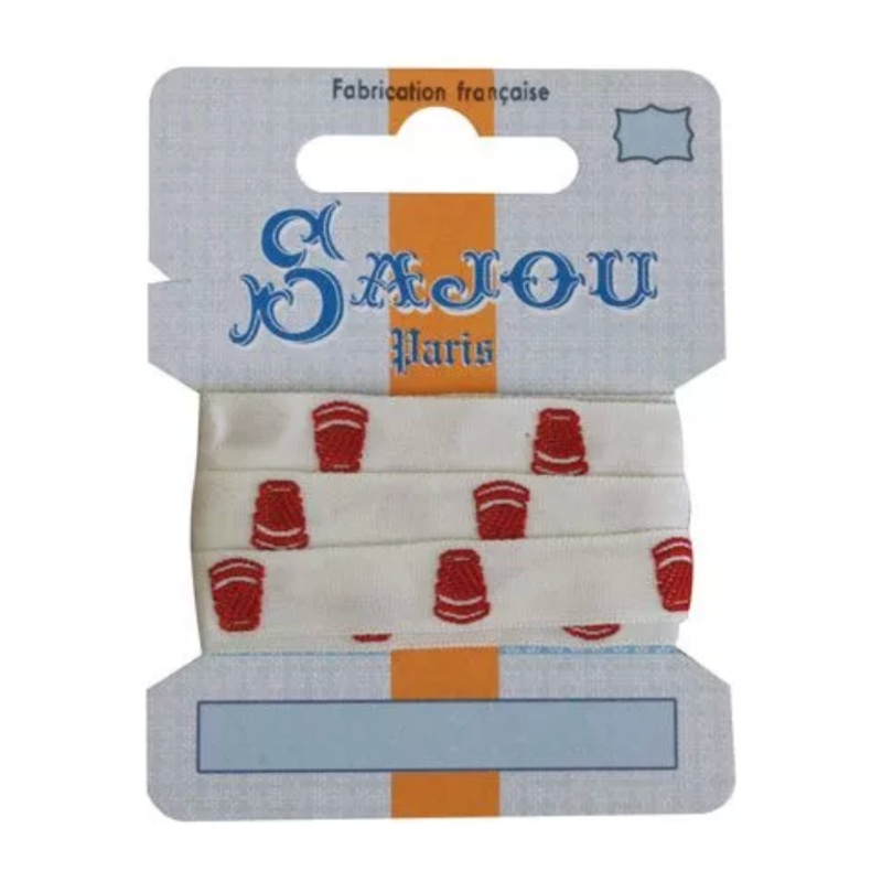 This cotton ribbon is made in France on beautiful vintage Jacquard looms exclusively for Maison Sajou. Our Couture collection ribbons are woven with the same thread as our Calais cocoons. This thread can also be used for cross stitch, opening up a whole new world of possibilities to combine embroidery and ribbons. 100% coton – Width 11mm – Length 1m. Presented on a Sajou ribbon card (height 9cm – width 7cm).