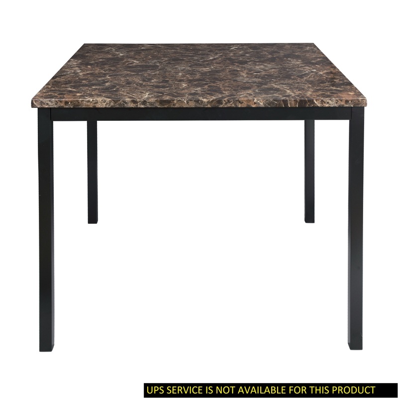 Description & DimensionsWith a scale appropriate for any number of smaller dining spaces, the Tempe Collection will provide the look and style you want in your home. The transitional feel of the group comes from the richly hued brown faux marble table top. The counter height table frame is constructed of metal with a black finish.