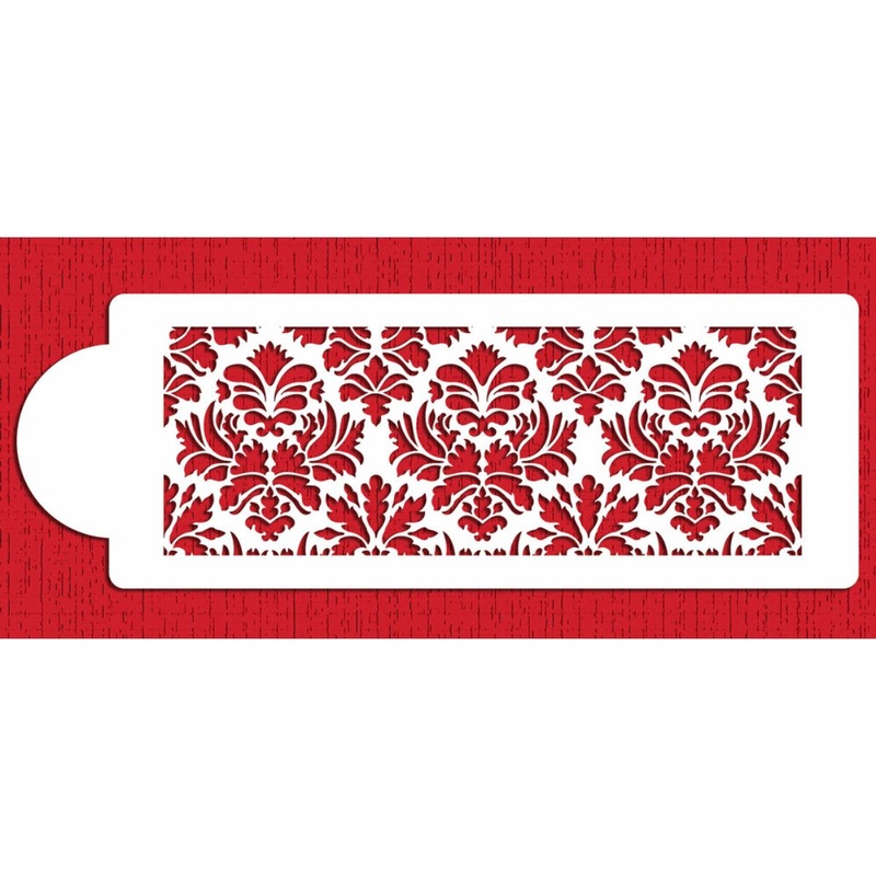 This stencil measures 4.5"H x 12.5"W and is made out of durable, 10mil food-grade plastic.