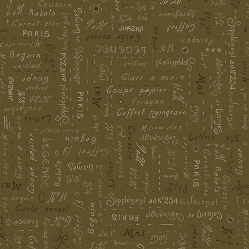Dressmaker ~ Script R521173D OLIVE 1/2 Yard