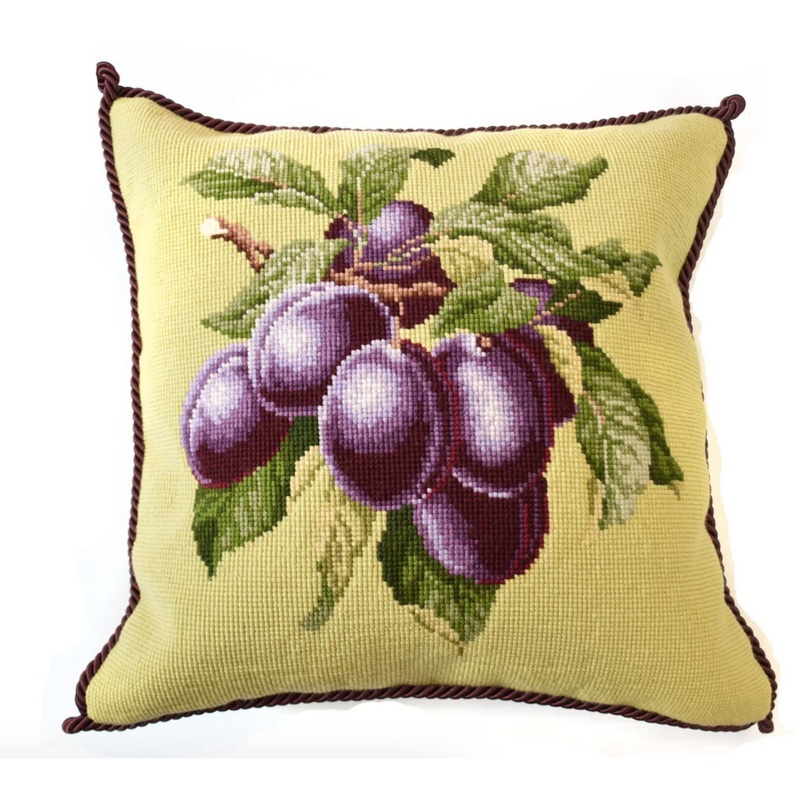 Design Size: 16" x 16"Canvas Size: 20" x 20"Background Color: Pale LimeKit includes everything you need to stitch the design: Printed canvas on 10 mesh count, a full-size color chart card, needles, and Elizabeth Bradley tapestry wool.