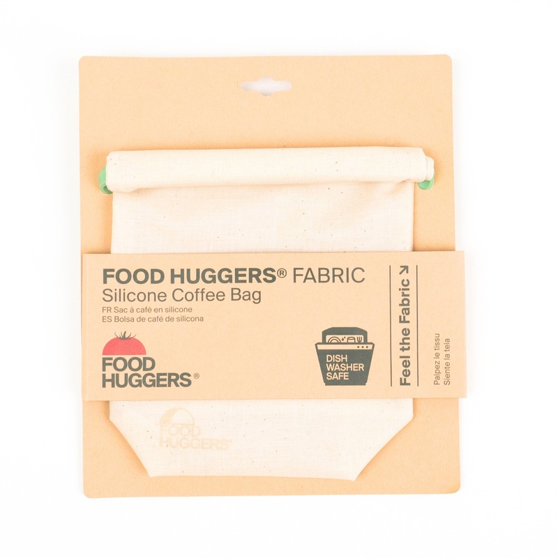 The ultimate reusable solution to all your packaging free and bulk shopping needs. The patented bag combines 100% cotton with food grade silicone creating a multi-functional, multi-use, dishwasher safe bag. With its classic roll-top construction, the Food Huggers Fabric & Silicone Coffee Bag allows you to easily remove air and keep your coffee and bulk goods fresh for longer periods of time. And thanks to its bendable, silicone-covered metal arms, you can create an airtight seal that locks in all that delicious flavor and aroma.