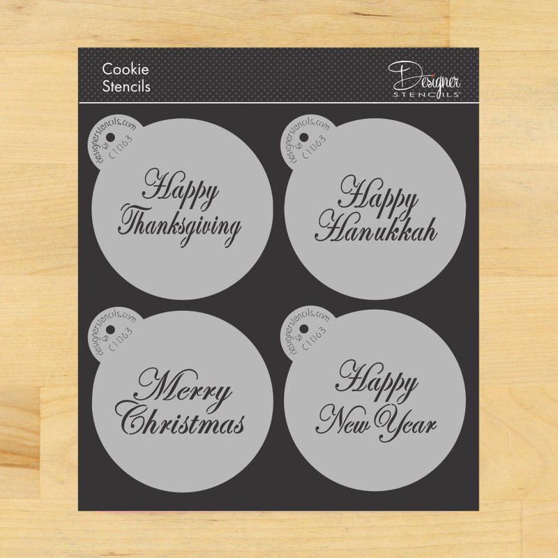 This set of four stencils, featuring phrases like “Happy New Year” and “Merry Christmas,” will add a touch of elegance to your cakes. The script font and 4 inch circle size make it easy to create beautiful designs for Thanksgiving, Hanukkah, and more!