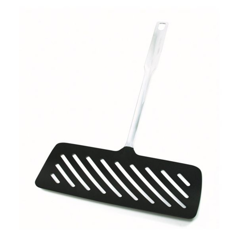 Measures: 13.5" x 8" x .25" / 34cm x 20cm x .6cmAn essential tool when grilling fish on the BBQ.Handle is stainless steel and the head is nonstick, making fish turning a breeze.Hand washing recommended.
