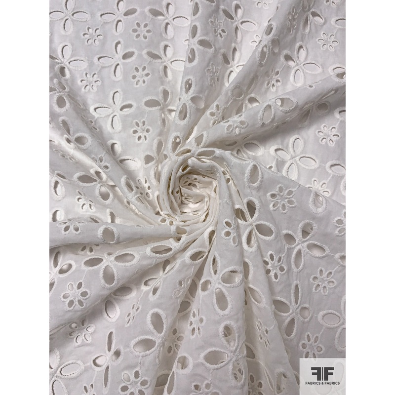 Floral Pattern Embroidered Eyelet Cotton Voile – Off-White Fabric by the Yard